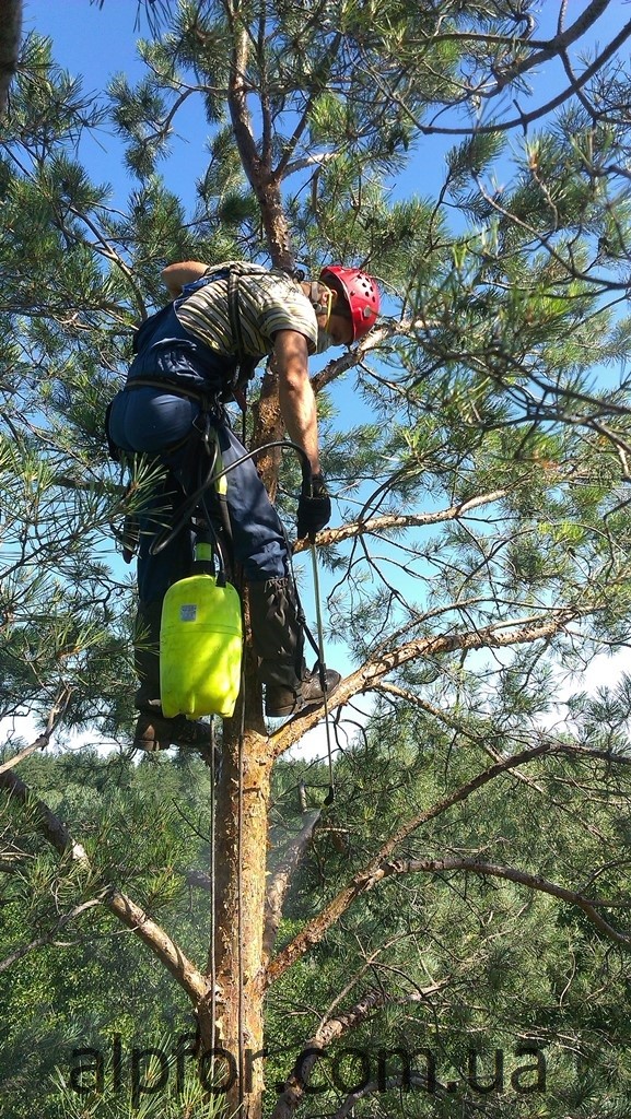 Такий захід вимагає спеціального спорядження, технічної підготовки та досвіду працівників. Наша команда з 18-річним досвідом роботи в сфері арбористики (роботи з деревами) в останні роки активно бере участь в боротьбі з короїдом в Київській області. Стовбурові обробки є бар’єрним способом захисту і мають термін дії 35-40 днів.