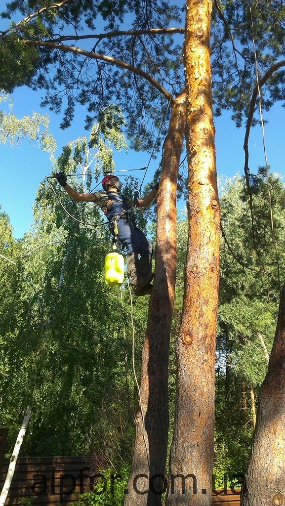 Такое мероприятие требует специального снаряжения, технической подготовки и опыта работников. Команда AlpFor с 15-летним опытом работы в сфере арбористики (работы с деревьями) в последние годы активно принимает участие в борьбе с короедом в Киевской области.